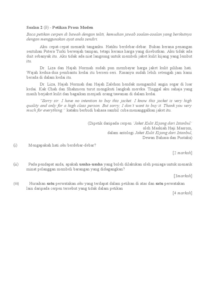 Cerpen yang menarik ini telah ditulis oleh Maskiah Haji Masrom seorang penulis yang berasal dari Batu Pahat Johor. Live worksheets Malay. Live worksheets Malay Bahasa Melayu BM Komsas CERPEN JAKET KULIT KIJANG DARI ISTANBUL.