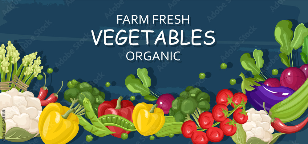Farm Fresh Vegetables Vector Banner Store Shop Grocery Detailed Illustrations Posters Stock Vector Adobe Stock